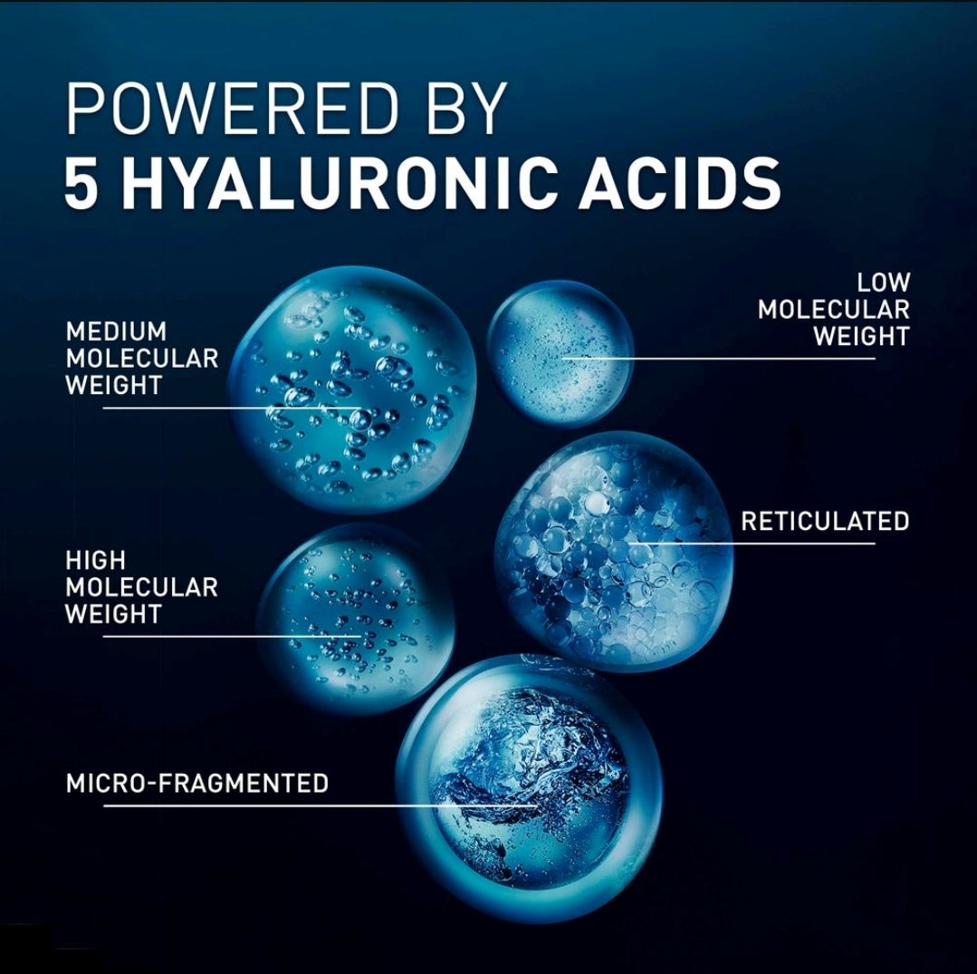 The formula is powered by five types of hyaluronic acid that hydrate both the surface and deeper layers of the skin. Surface hydration instantly smooths and softens, while deeper hydration helps restore bounce and firmness. As a result, the skin appears visibly plumper, more supple and evenly textured.